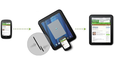 O WebOS também chega à versão 2.1 com a comunicação sem fios entre aparelhos, permitindo a sincronização na nuvem. De fato, há mais conectividade entre a nova linha de produtos da HP, com o carregamento do TouchPad feito pela base Touchstone, sem o uso de cabos. E a transferência de informações, como a URL de um site, de um dispositivo ao outro, é feita apenas colocando o smartphone em cima do tablet.